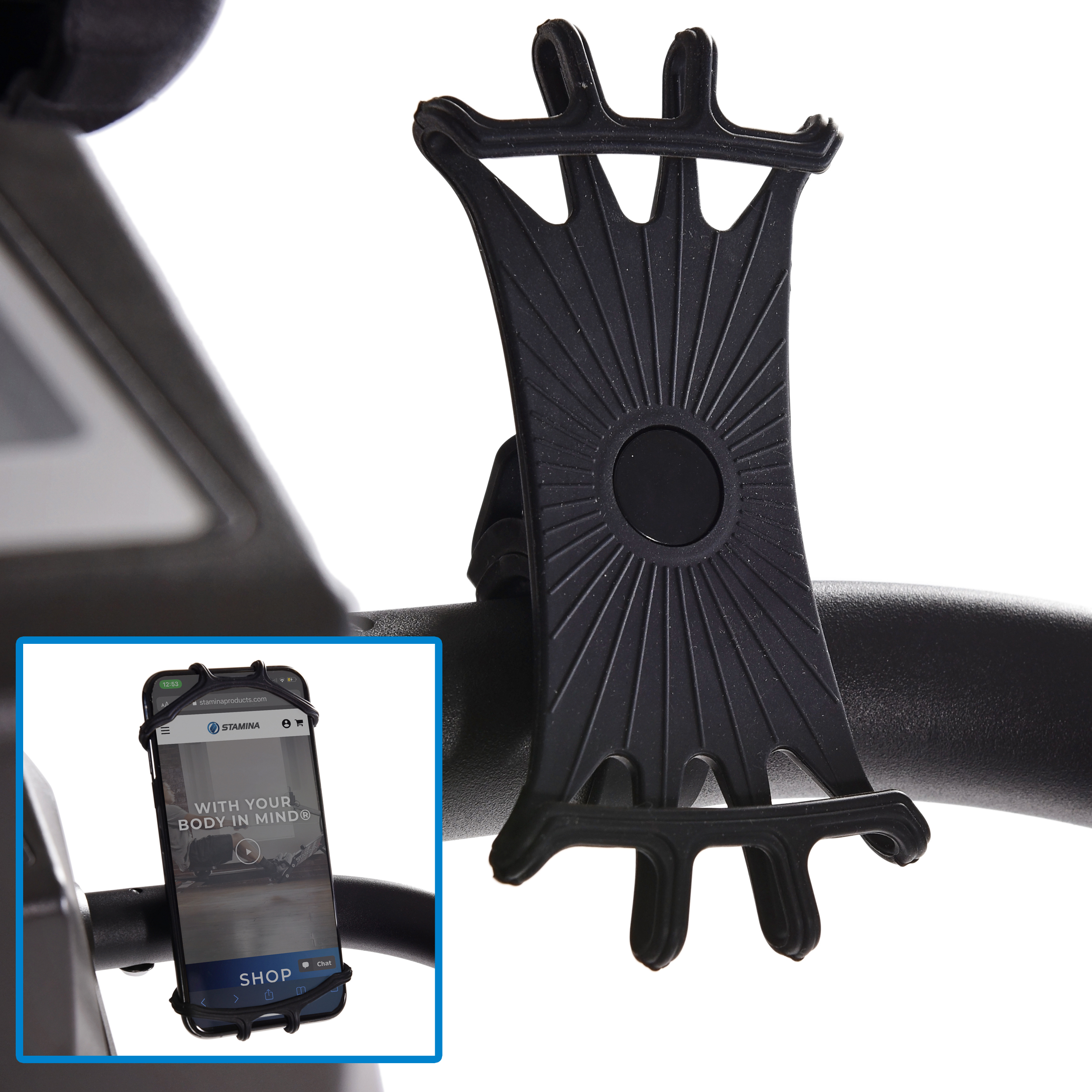 - Includes adjustable phone holder